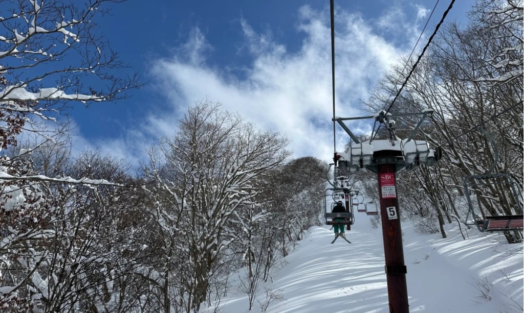這裡屬於野澤溫泉滑雪場的山頂區域,由A 到 E 五條雪道組成,是全然不同于溫泉鄉的銀色自然大世界,滑雪一直持續到五月初。天氣晴朗時,從山頂可眺望到日本海。